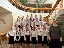 Нашу школу представлял младший хор "Домисолька" и руководитель хора Попова Кристина Алексеевна. В исполнении хора прозвучали русская народная песня "Во кузнице", "Весёлая песенка", "Зима".