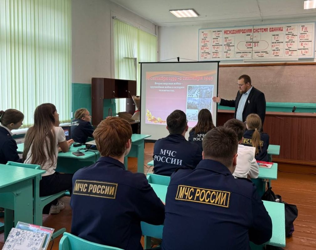 В честь этой важной даты для учеников 9-10 классов состоялся особенный Урок мужества, который провел учитель истории и обществознания Степанов Д.В. Ребята познакомились с хронологией, ключевыми событиями Второй мировой войны и составом противоборствующих военных блоков, обсудили причины Второй мировой войны, а также узнали о героизме советских солдат, которые внесли решающий вклад в Победу над фашизмом