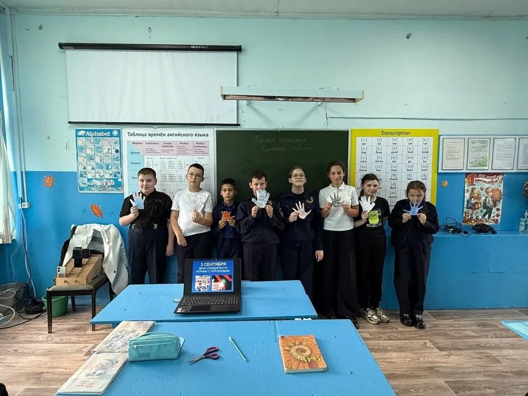В рамках этого дня в нашей школе состоялось часы памяти "Беслан-боль и скорбь всей планеты". Ребята вместе с классными руководителями вспоминали события, прошедшие в Беслане в 2004 году, говорили о патриотизме и мужестве, сплочённости и недопущении подобной трагедии.