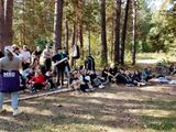 После заезда на полянке устроили уютный пикник: ароматные бутерброды, свежие фрукты и горячий чай помогли восстановить силы и поделиться впечатлениями. Также мы играли в мяч, что добавило веселья и активности в наш отдых.