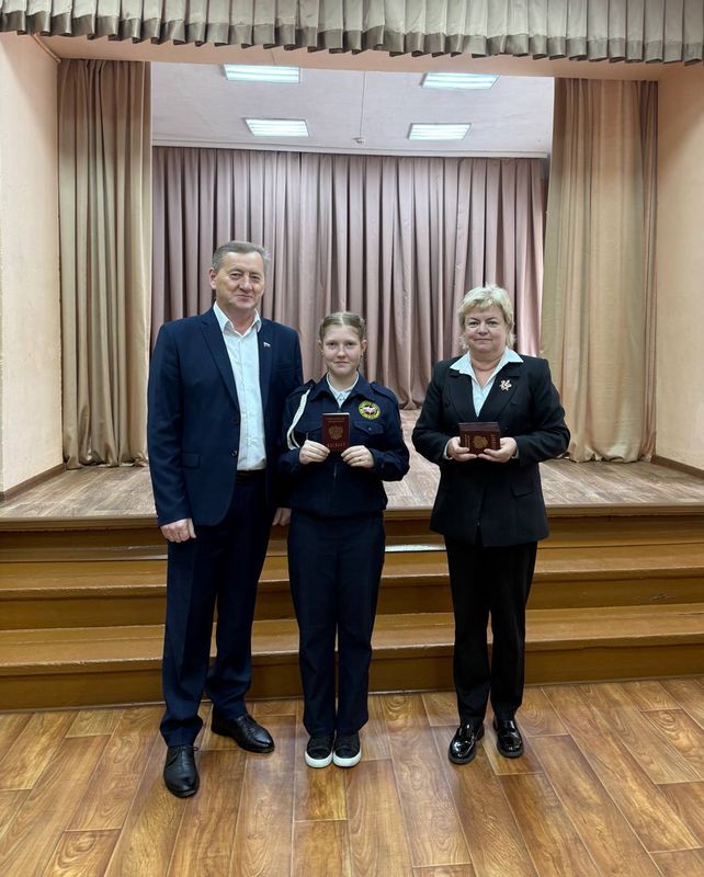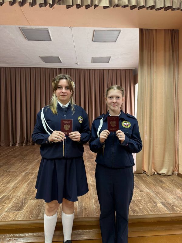 Особая честь вручения первого документа выпала ученицам 8 «А» класса — Евангелине Жаворонковой и Юлии Царевой.