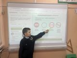 Так, в 1 "Б" и 1 "Г" классах состоялась "Школа пешехода". Для детей был организован просмотр фильма, дети играли в дидактическую игру "Расставь знаки на улицах города" и отвечали на вопросы викторины.